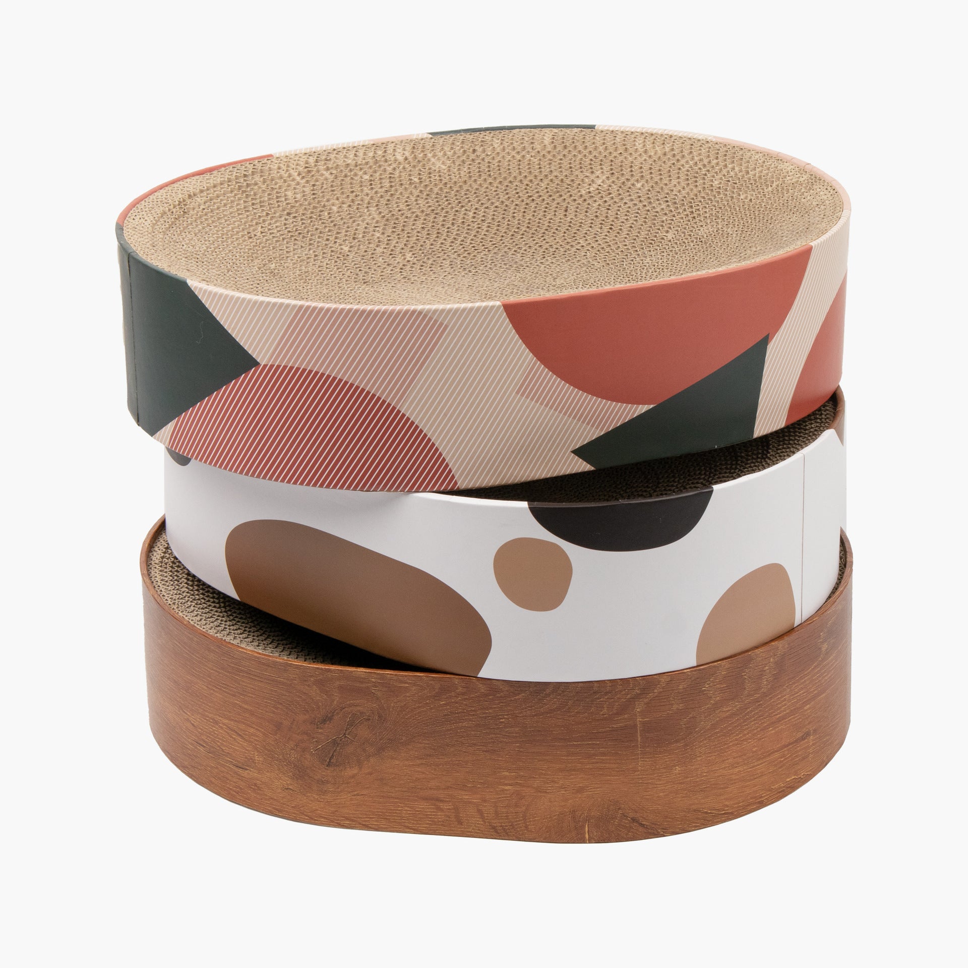 猫用 木目調オーバル爪とぎベッド|2WAY(爪とぎ+くつろぎベッド)